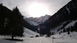 Bleibt gut, wird mit leicht sinkenden Temperaturen im Aufstieg bis Alp Hohniesen härter/glasiger. Evtl. Harscheisen.