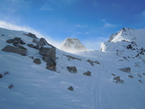 Sehr starker Wind ab Witenwasserengletscher und vor allem auf dem Grat!