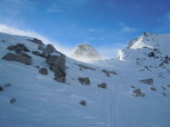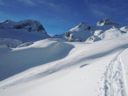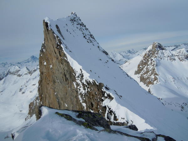 Eine Spur vom Wintergipfel zum Hauptgipfel ist vorhanden.Wegen des starken Windes haben wir aber auf die Begehung verzichtet.
