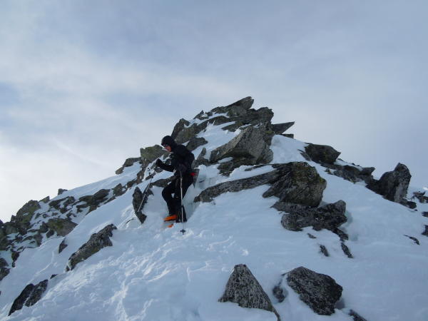 Der Grat zum Wintergipfel ist zur Zeit problemlos und ohne Steigeisen zu begehen, da sehr gut eingeschneit.