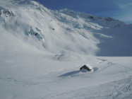 Von allem etwas, jedoch recht gut. Im ganzen Witenwasserental kein Tauwetter heute. Die Abfahrt über den noch wenig verfahrenen Witenwasserengletscher und durchs Tälli bis zum Stafel in kompaktem, teilweise windgepresstem Pulverschnee. Selbst das Witenwasserental war gut zu fahren. Ab Höhenbiel dann recht ruppig und gedeckelt. Teilweise aber schon pistenähnlich, wenn auch schmal.