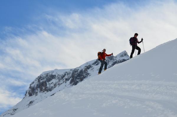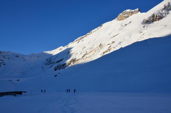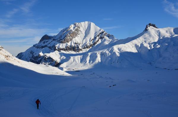 Trotz den Frühlingshaften temperaturen herrschten noch gute Bedinungen. Auch der Gipfelgrat ist bis wenige Metern unterhalb des Gipfels gut begehbar. Die Abfahrt über den Süd-Ost Hang etwas verfahren aber gut machbar.