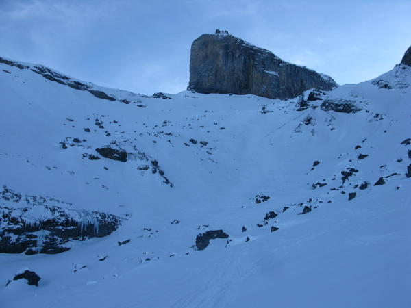 aufstiegsroute noch viel pulver,wäre auch für abfahrt lohnend.kalter wind und schneeverfrachtungen in richtung sonnenhänge,im windschatten wärmt die sonne aber kräftig. abfahrt durch das üschenental,oben pulver, gegen unten zunehmend gedeckelt und im talgrund ruppig, bruchharstig und anstrengend zu fahren. talabfahrt gibt einen den rest...
