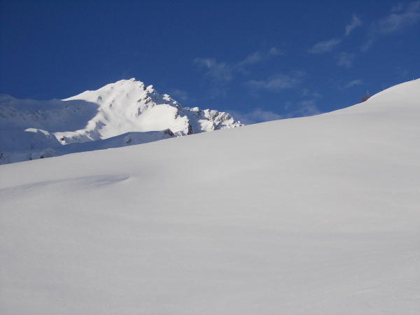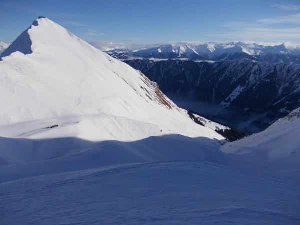 Diese Querung ist Lawinen exponiert, und stellt die Schlüsselstelle der Tour dar. Die stark beschienen Südhänge an der Nolla verlangen einen frühen Start in Tenna. Rest sehr schön zu steigen. Die wenigen alten Spuren waren wieder zugeweht.