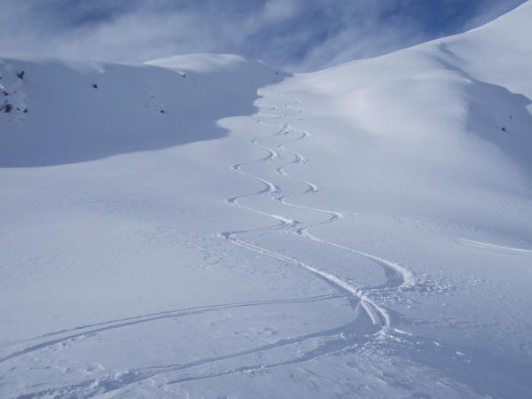 Bei den kommenden Neuschneefällen neu beurteilen. Die Tour erfordert eine geschickte Routenwahl, und sollte bei "Lawinen sicheren" Verhältnissen angegangen werden.