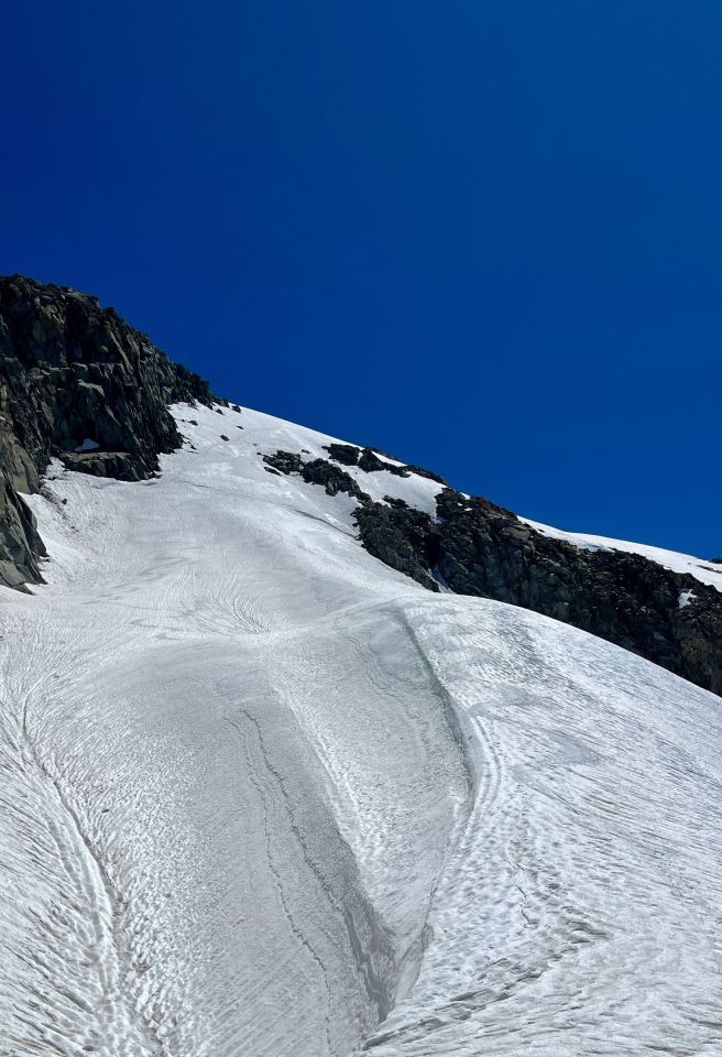 Das Gut bezieht sich auf die Top Schneeverhältnisse ab dem Abzweiger und das bombastische Wetter. Gletscher ist blank und man muss die Skier eine Stunde tragen. Dann hat es bereits vor dem Abzweiger Schneefelder. Wenn es nichts ausmacht, die Skier einige male kürzere Strecken zu tragen, findet man immer noch Schnee. Für zwei Drittel der Tour hat es noch schönen Schnee. Habe auf dem Gipfel gewartet bis 11.45 Uhr um abzufahren. Perfekter Zeitpunkt. Oben traumhaft schönes Sülzli auf harter Unterlage. Unten war der Büserschnee auch aufgeweicht und gut zum Fahren. Einen lohnenden Saisonabschluss. War alleine unterwegs.