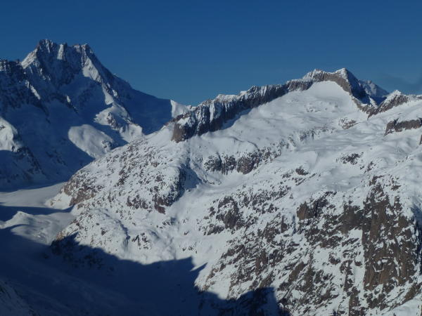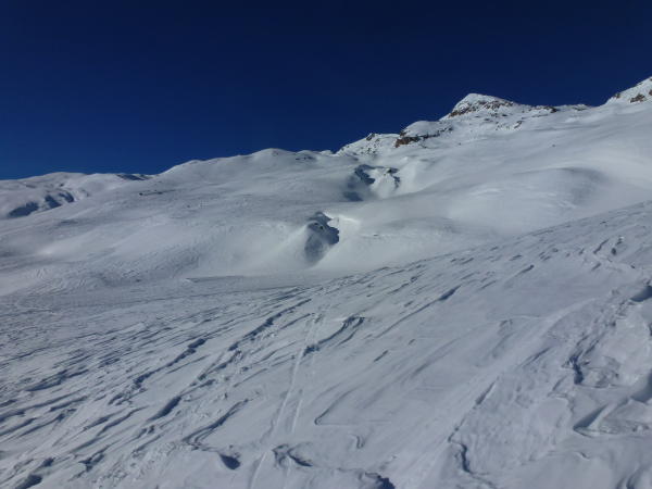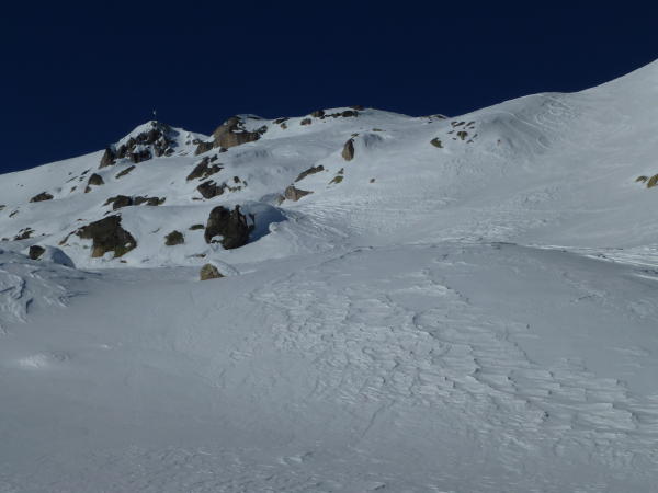 Im oberen Teil vom Wind gezeichnete Schneedecke,mit vielen tragfähigen Flächen für schöne Schwünge; im unteren Teil teils schöner Sulz!Etwas ruppiger Aufstieg direkt hoch beim kleinen Skilift in Oberwald(wie auf der Skitourenkarte) oder locker auf planierten Grimselweg bis über die Waldgrenze.