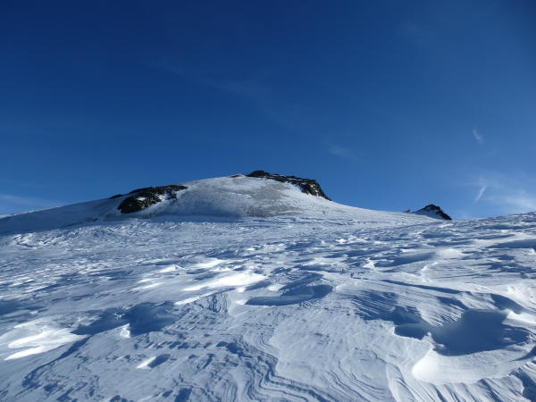 Windgepresster Schnee, Blankeis am Gipfel