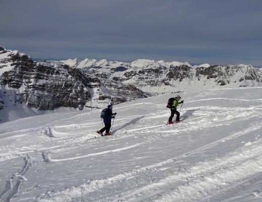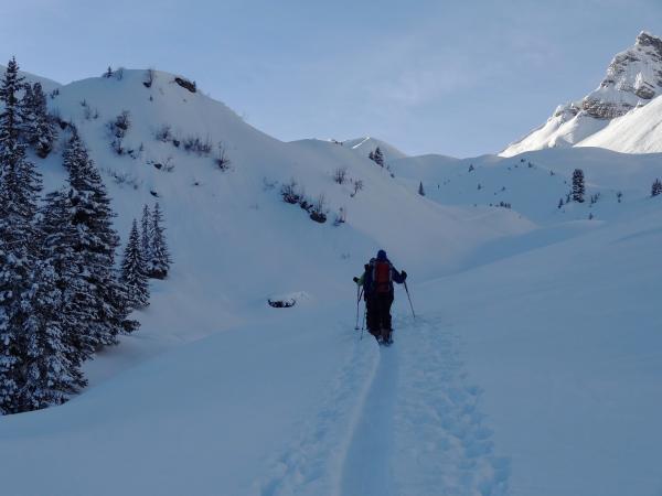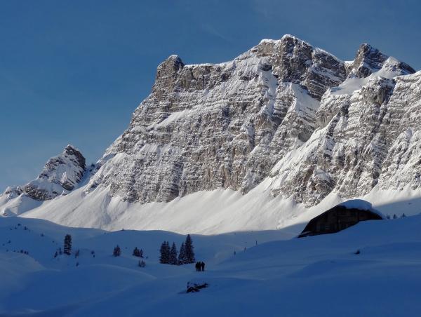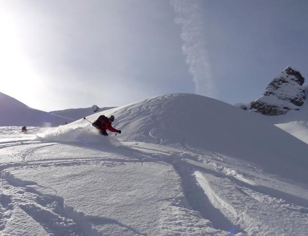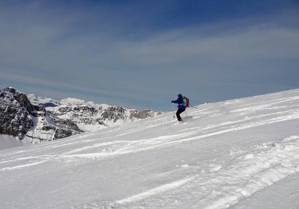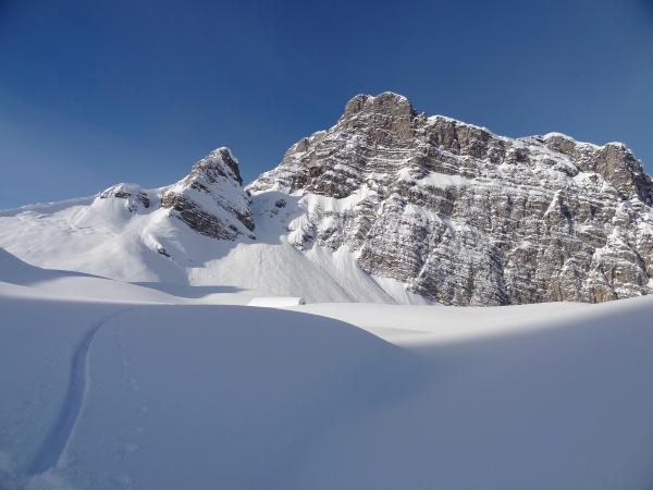 Keine. Steile Nord und Ost Hänge sowie Couloirs sind durch Windablagerungen geladen.