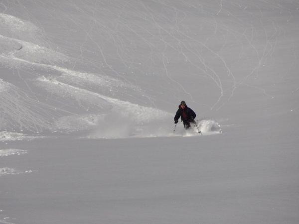 Mehrheitlich guter Pulver aber auch Triebschnee und Presspulver. Wind.