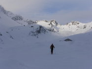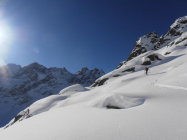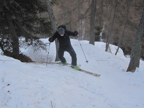 Ab Dalpe bis zur Brücke auf 1650m immer wieder kleinere Tragstellen. Der Schnee ist hart und teilweise eisig! (Nichts für Genusstürler)! Ab 1650m im Wald immer noch sehr hart aber genügend Schnee vorhanden. Ab Alp Croslina gut tragende Schneedecke mit kleiner Pulverauflage.