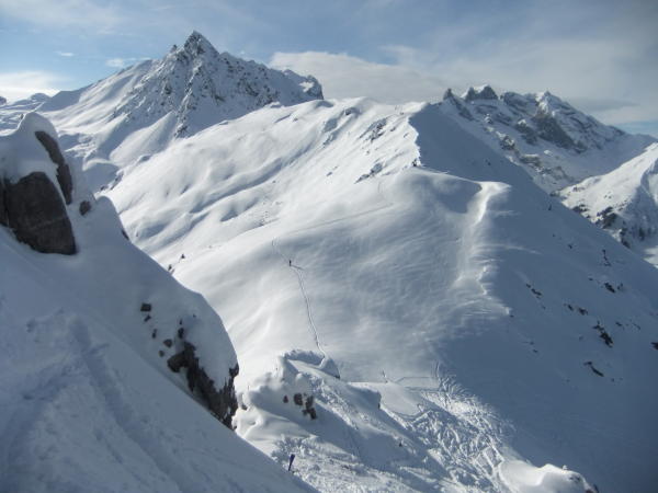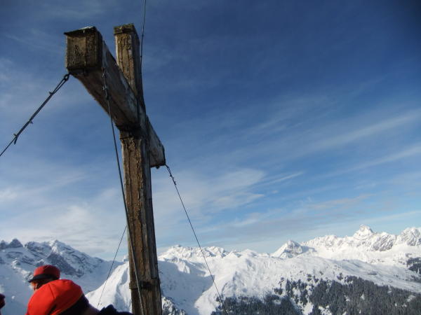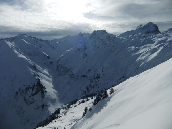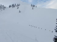 Im Aufstieg ab der Alpila-Alpe etwa 20 Tourenskigänger (u.a 12 vom DAV aus Friedrichshafen), im Abstieg 11 Tourenskifreunde getroffen.