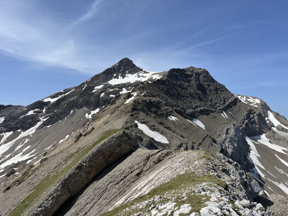 Optimal und trocken im Aufstieg. Unter dem Oldensattel noch einige willkommene Schneefelder.