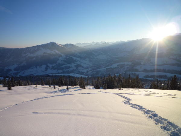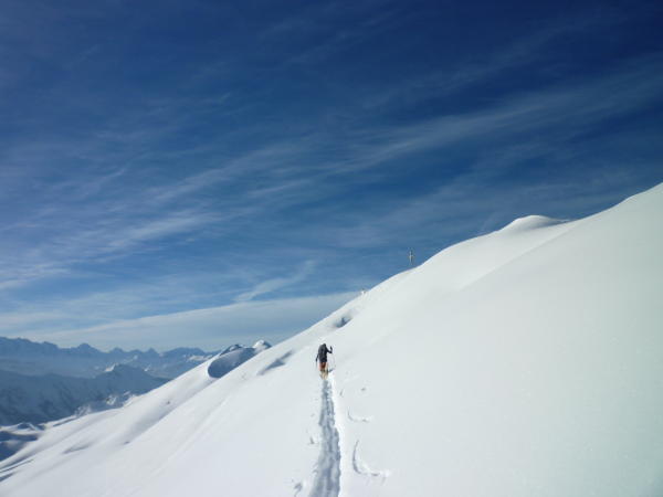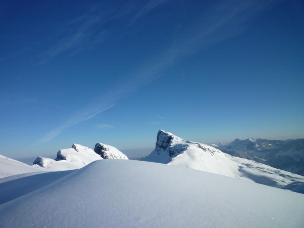 Start bei -15 Grad, Traumhafter Pulver, ca. 30-50 cm. Von unten bis oben Top Verhältnisse. Gipfelhang war unverspurt. Es hat mehr als genug Schnee.