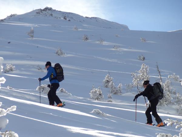 Warum wir nicht das Chelli hinunter gefahren sind? Weil, bei guten Schneeverhältnissen, man auf dem Rücken länger skifahren kann und erst noch an der Sonne.