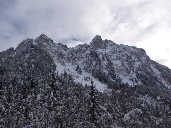 Den sich vermutlich durch die steigenden Temperaturen ständig aus den Bäumen heraus entladenden Schneemassen war eine gewisse Beachtung zu schenken. Wenigstens flogen heute keine kiloschweren Eisbrocken herunter, wie ich das schon mal im Allgäu erlebt habe.