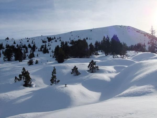 Morgen noch pulverig, bei der Abfahrt schwerer Nassschnee wie im Frühjahr.