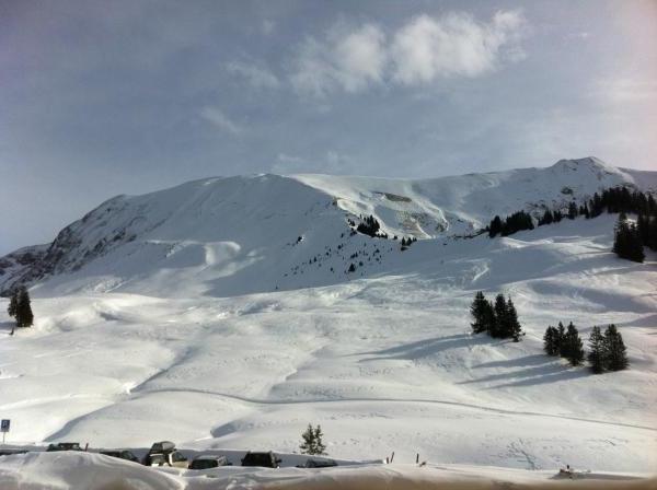 Schneebrett leicht auslösbar da alles mit Triebschnee geladen. Grosser Abriss bis auf Grund rechts vom steilen Grataufschwung.
