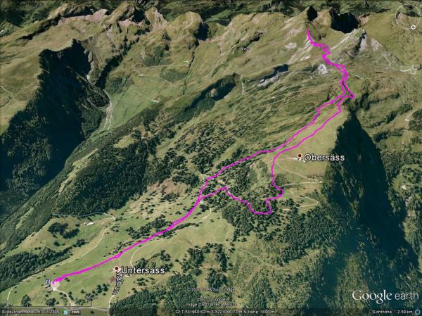 Am Vormittag zuerst Wetterbesserung; auf Rückweg wieder deutliche Verschlechterung mit massiven Sturmböen aus S/SO (gut 70-80km/h) im Bereich Hanenspil.