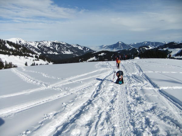 Die Schneeschuhtour auf die Berge über dem Gunzesrieder Ostertal ist eine der leichten Touren im Allgäu. Ohne besondere Schwierigkeiten, völlig entspannend, verläuft dieser Klassiker durch Wald und dann über schönen Bergrücken bis zum steileren (25°) Gipfelaufschwung.