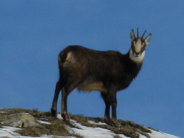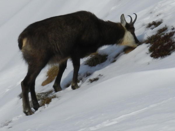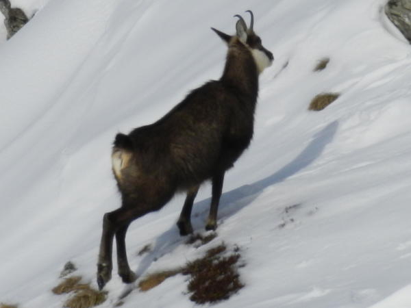 4 Gämsen unter dem Gipfel des Burgfeldstandes beobachtet. Bitte umsichtig gehen und die Tiere nicht zur Flucht zwingen. Für das kurze Stück brauchte ich sicher eine halbe Stunde, die Tiere sind aber vor Ort geblieben.