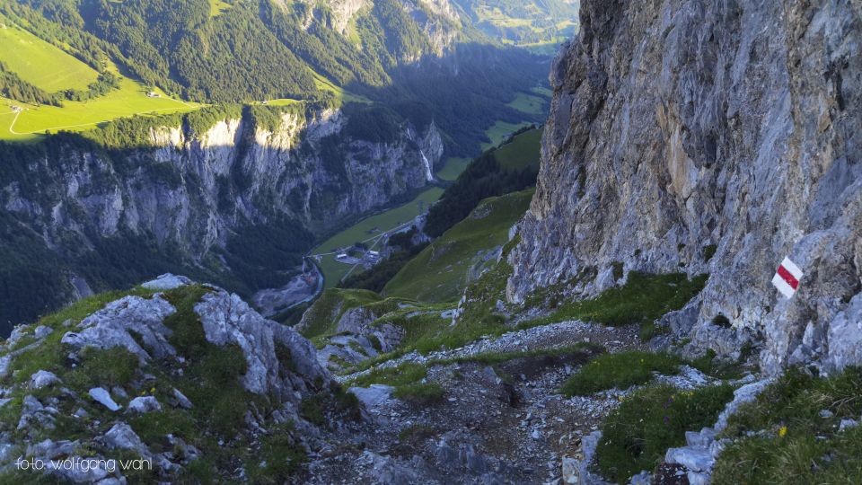 Auch im Abstieg vom Ruchi ist der Pfad nun viel besser zu erkennen, den Steinmännchen folgend gelangt man einfach und sicher zum Muttsee. Ebenfalls gut zu erkennen im Abstieg ist der Pfad entlang des Muttsees richtung Muttseehütte. Der Abstieg von der Muttseehütte zum Parkplatz in Tierfed ist gleich wie der Aufstieg, trocken und gut zu gehen.