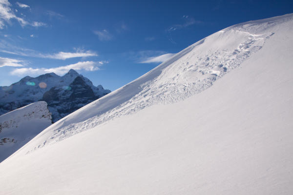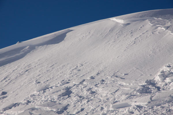 Siehe Bild. Im Aufstieg kurz vor dem Hagelseeli. Nur ca. 30 * 10 Meter gross. Vermutlich gestern spontan abgegangen (Abrisskante schon wieder verweht)