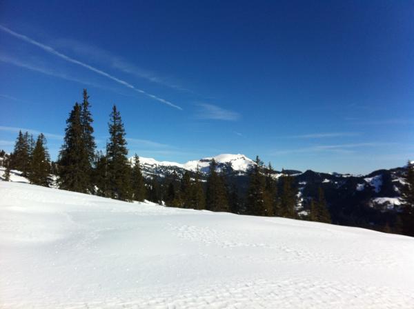 Pulverschnee an schattigen Hängen - oben aus eher verfahren und holprig.