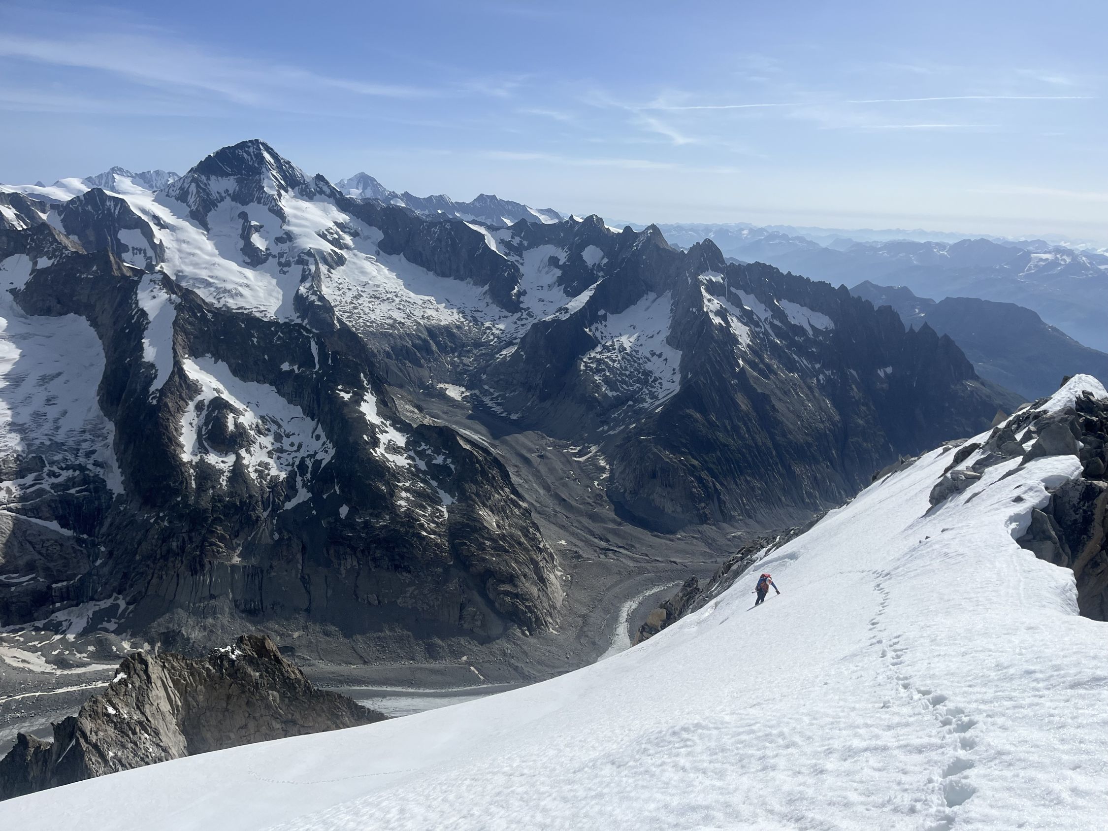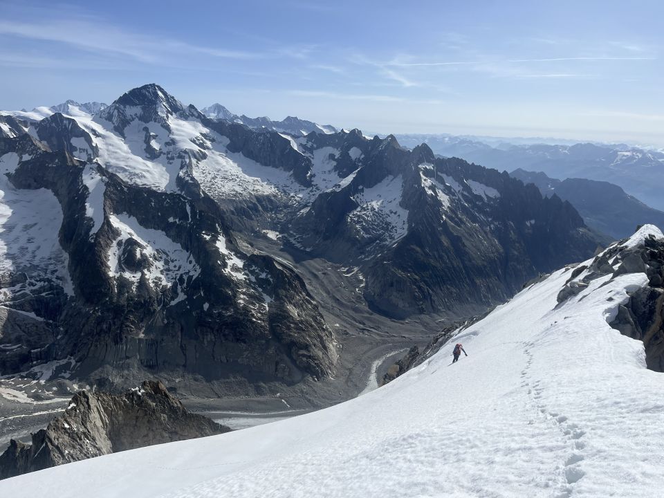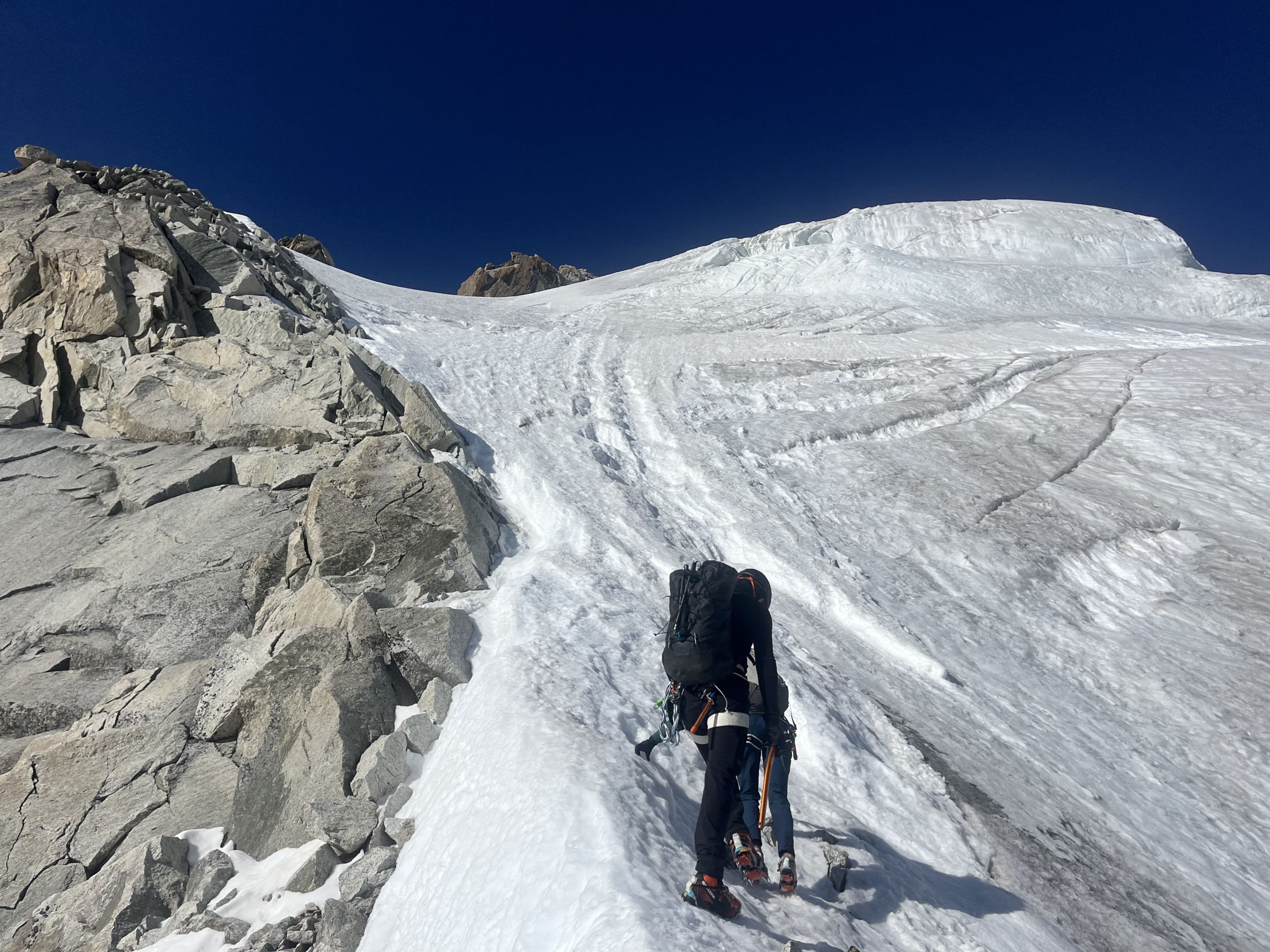 Perfect, ausreichend Schnee am Gipfel Flanke. Fels trocken