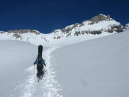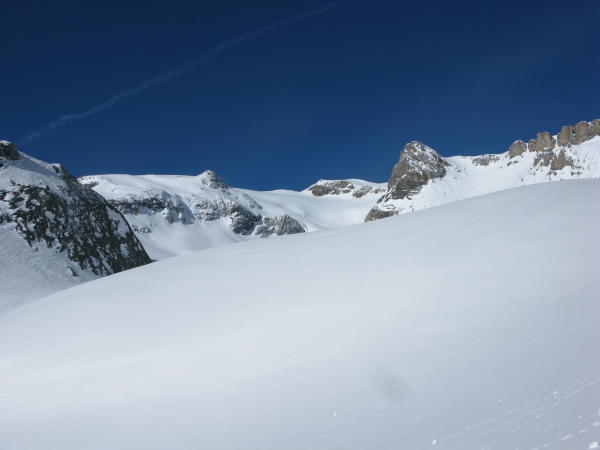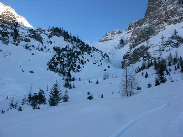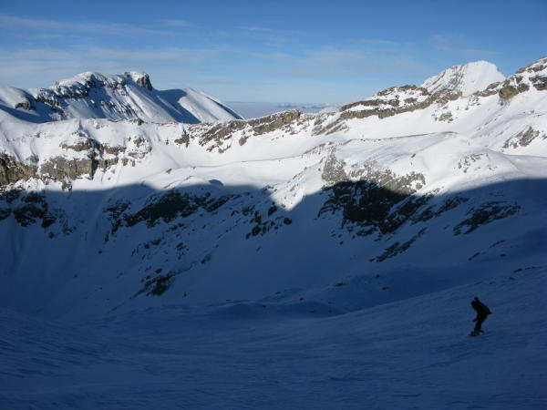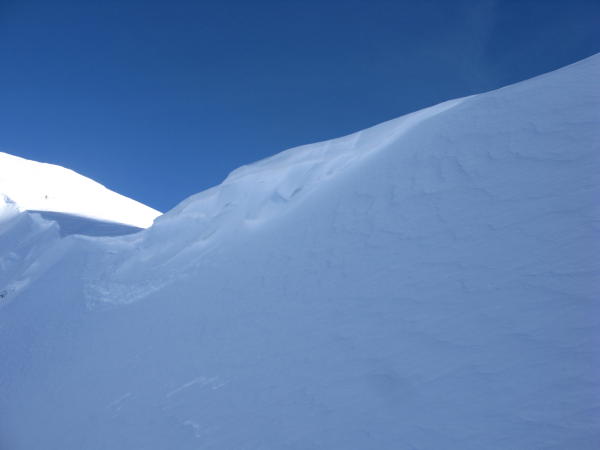 Noch nicht lohnend,eindeutig zu früh in der Saison.Im Steilhang oben, haben sich zwei direkt übereinander liegende Deckel gebildet, welche noch nicht einwandfrei tragbar sind. Unregelmässiger Aufbau, also noch mehr Schichten erwünscht...