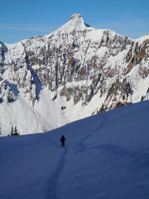 Gipfel bis Sattel Pulver-Sattel bis Stufe Pulver und Deckel teilweise tragend-Stufe bis See Pulver