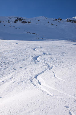 Einige Tüüreler haben Eingangs Biregrabe gleich östlich über die Rippe hoch gespurt. Das ist lawi technisch heikel - die beiden frischen Grundlawinen sind in ähnlichstem Gelände losgebrochen.