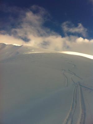 nach der supergenialen abfahrt vom gipfel mit firstline im puder, fellte ich noch einmal an in der grimmifurggi.