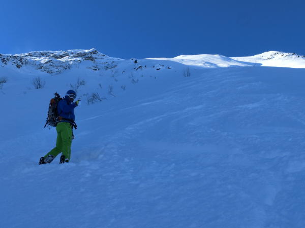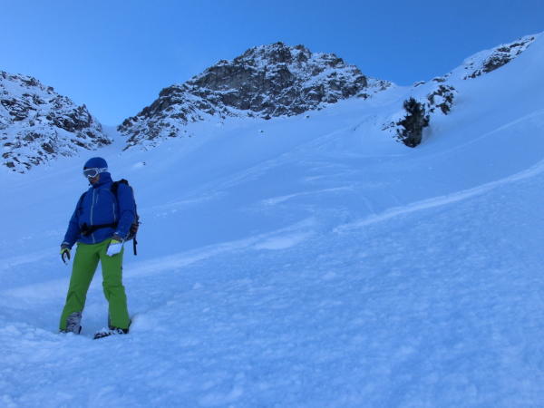 beschriebene Abfahrt nur bei sicherer Lawinenlage zu empfehlen!