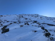 unten im Wald sehr wenig Schnee (nicht zu empfehlen für die Abfahrt); dann aber guter Pulver; in der Nordflanke jedoch sehr abgeblasen und viel Steinkontakt im Aufstieg; Aufstieg aber mit Ski bis zum Gipfel möglich;