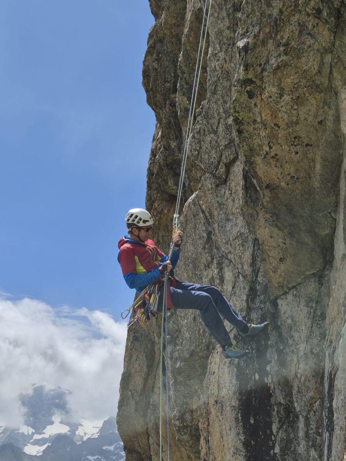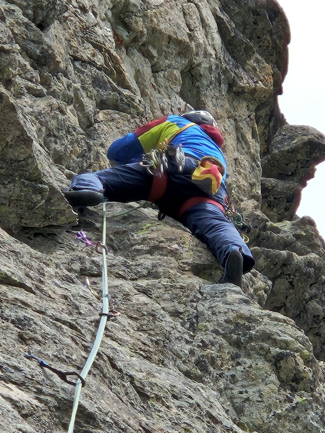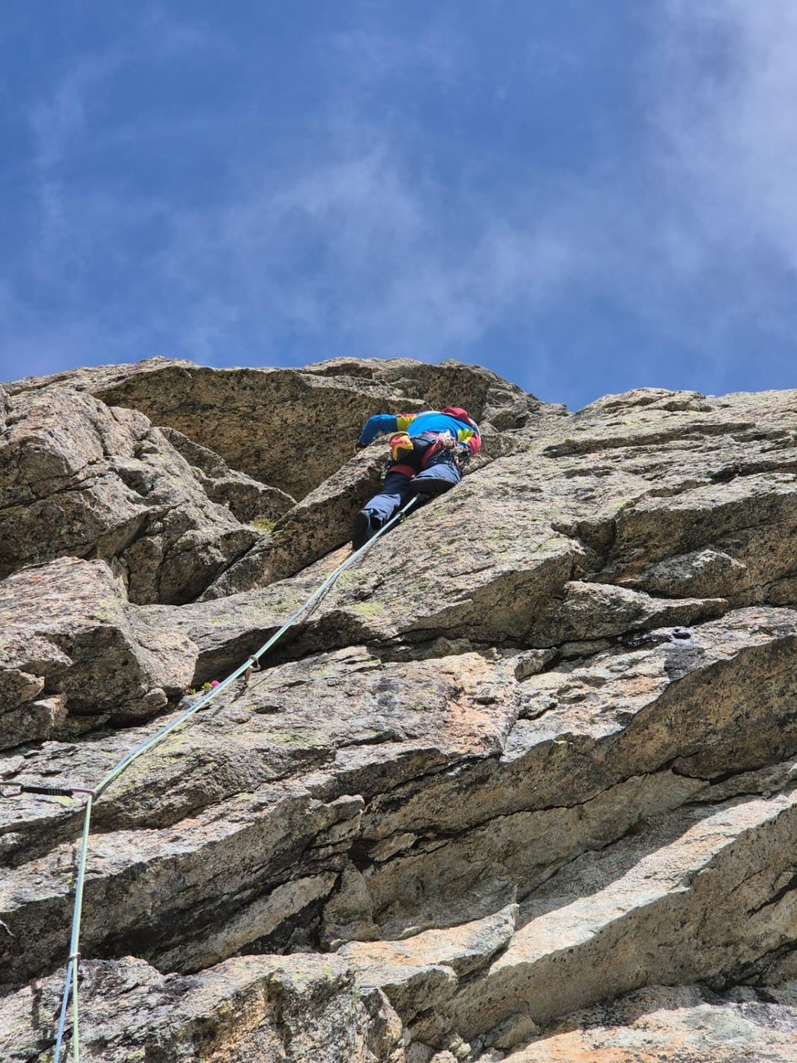 Tolle Kletterei am Pfrindler. Nochmals anhaltender und schwieriger als Troimli. Zum Glück ist man schon vom Zustieg aufgewärmt :-) denn in der ersten SL wird man gerade mal gefordert. Jede SL hat Ihren speziellen Charakter. Mit den highlights in SL 3,4 und 5. Fantastische Route im soliden und steilen Gneis. Immer den gelb markierten Haken folgen. Den einen oder anderen Keil, Friend kann man schon platzieren wenn man dann möchte :-)