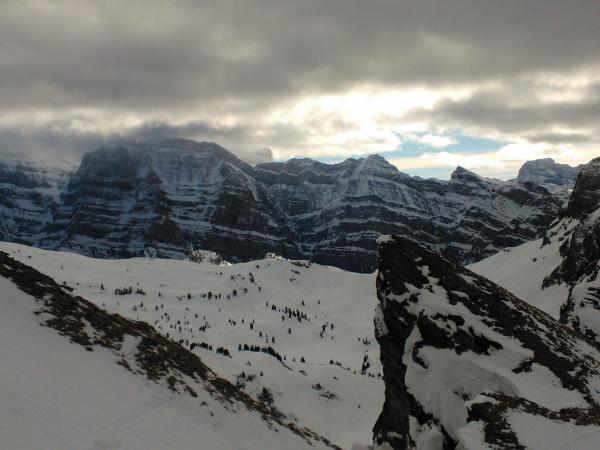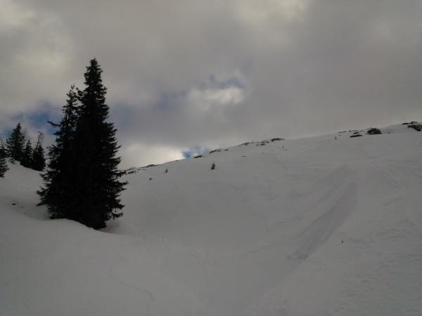 Der Lachenstock ist ungefährlich. Aber am Fluebrig donnerten mindestens sieben Schneebretter runter, während ich im Gebiet war.