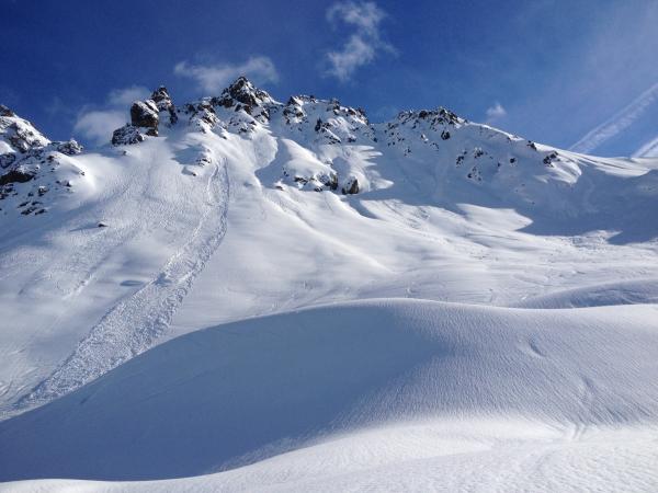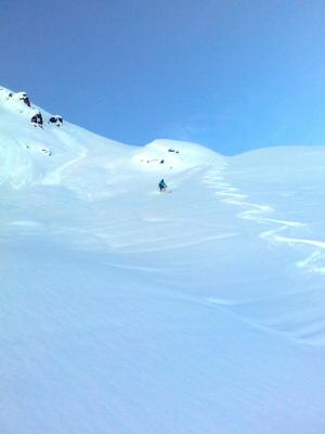 Von der Mittelfluh unzählige Abgänge beobachtet. Aus ca. 2300m in Westsüdwestseite.
