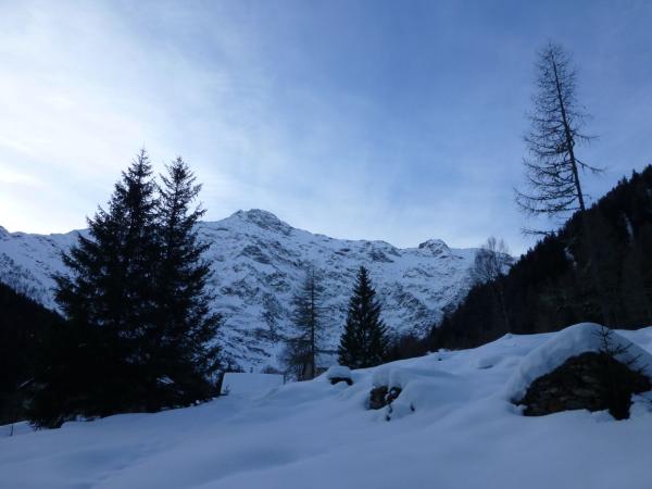 Ski zuunterst (Tauwetter) ca. 15min und im Wald bis zur Abzweigung 1650m wiederholt getragen. Sonst gute Spur bis Böc di Comasne Richtung Campo Tencia. Rampe z.Z. gut eingeschneit und über das drittoberste Band mit Pickel ohne Steigeisen erreichbar (Trittschnee). In der NW-Flanke (angenehm kühl) ca. 20cm leicht verblasener Pulver auf guter Unterlage. SW-Flanke aufgeweicht. Rampe mit Ski abgerutscht u. -geschritten, Ausfahrt über das Band. Der Waldweg macht bei der Abfahrt immer noch wenig Laune...