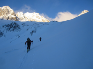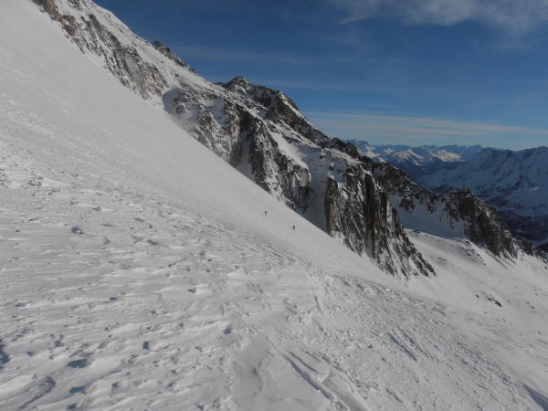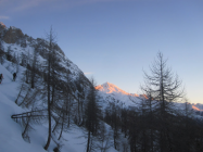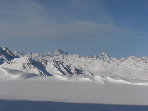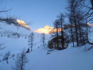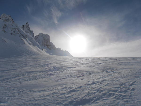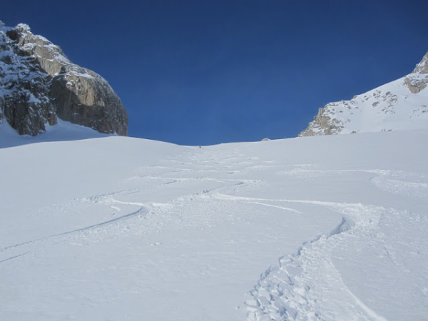 Start am Morgen 7.15 bei -5°C. Ab Alpe di Rotondo im Aufstieg zum teil stürmischer Wind. Bei der Abfahrt dann nahezu windstill und Sonne pur,(oben Pulver, ab Cap. Piansecco Sulz),traumhaft!