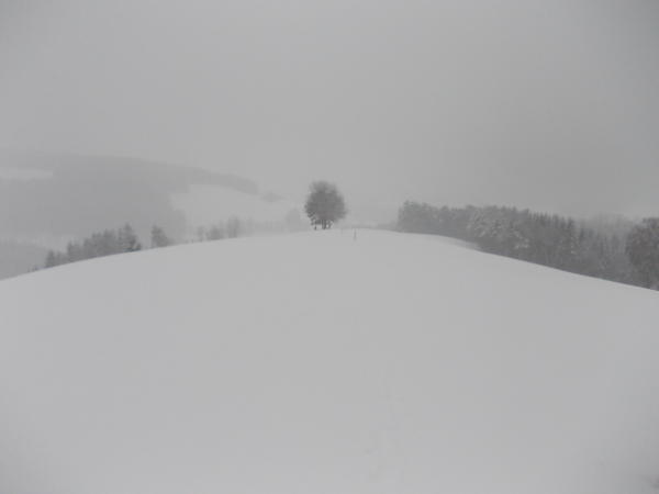 Bewölkung mit ein paar sonnigen Aufhellungen, auf dem Gipfel dann Schneetreiben.