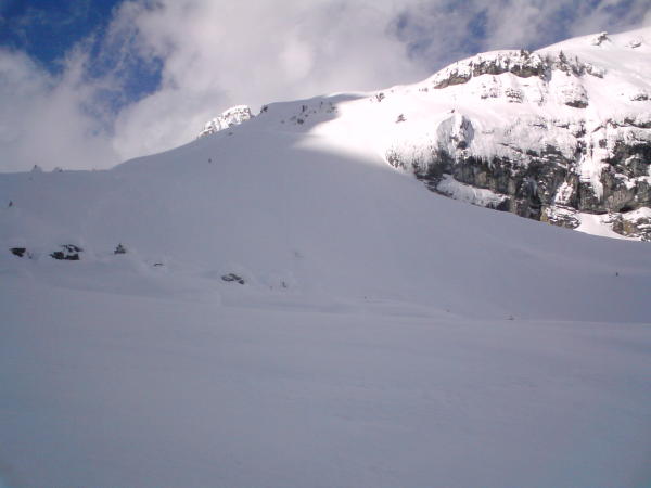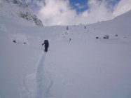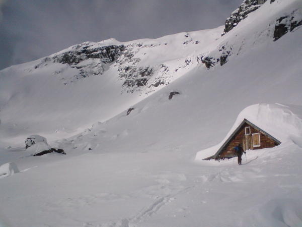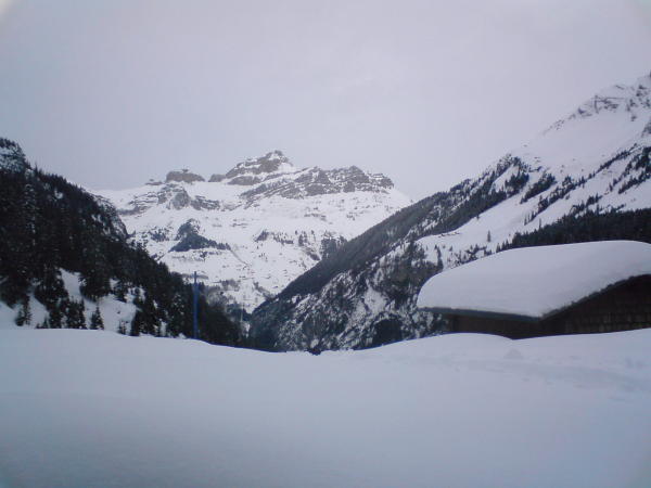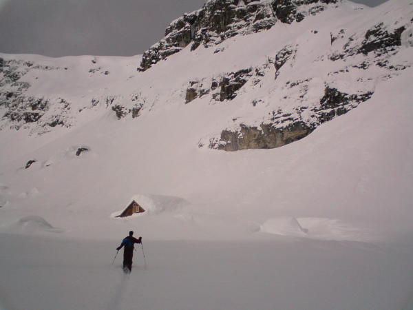 Schneeverwehungen bis fast zur Hüfte. 5.5 Stunden spuren bis zum letzten Hüttli im hinteren Griesstal. Wir waren deshalb spät dran. Wetterumschlag kam plötzlich.