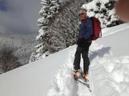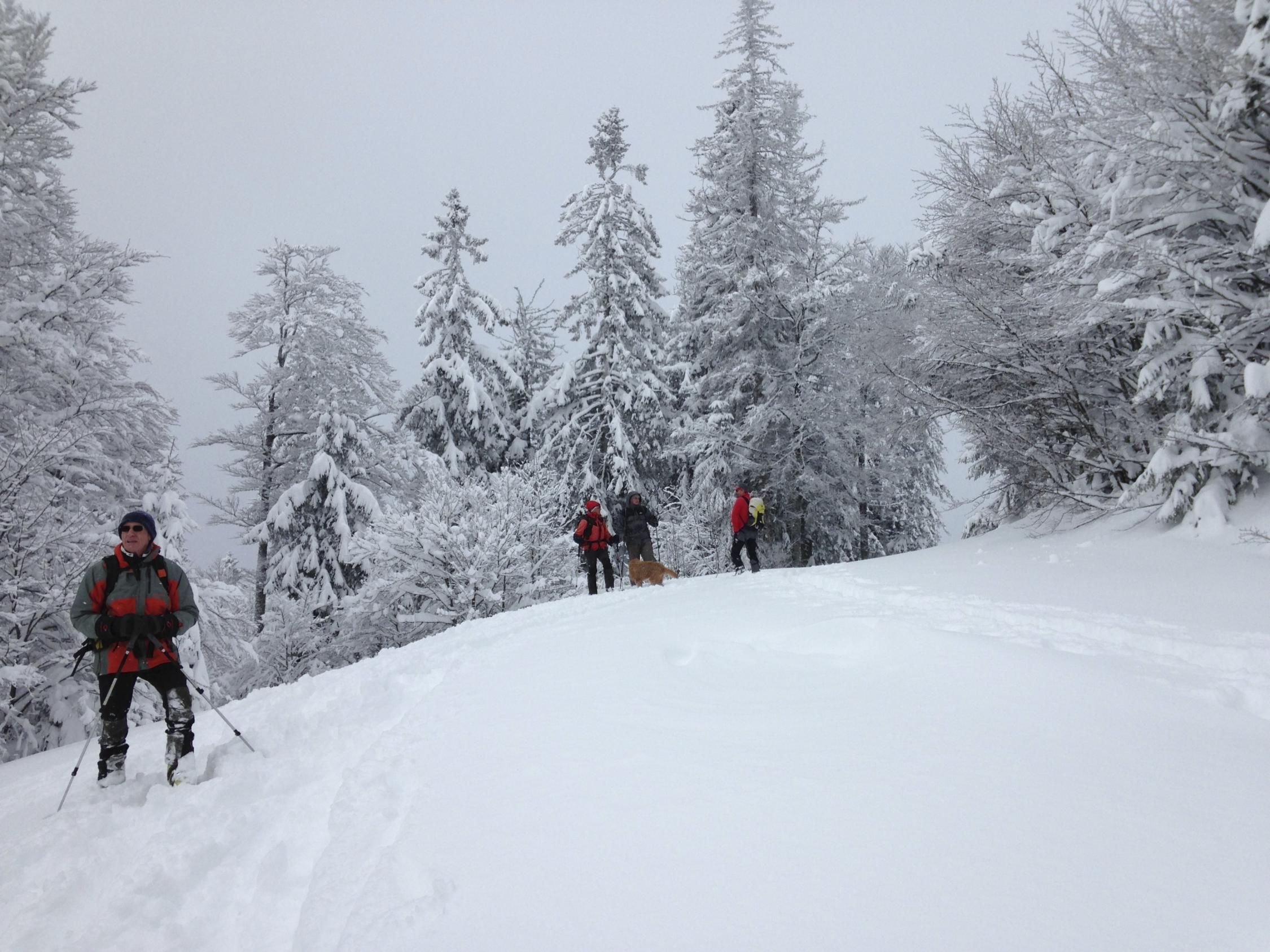 Sehr tiefer, leichter Pulver von oben bis unten. Auf den Flachstücken muss oft die Aufstiegsspur befahren werden um beim Abfahren vorwärts zu kommen. Die gesamte Schneedecke beträgt jetzt 50 - 100 cm. Keine Bodenkontakte. Wetter bedeckt mit sonnigen Abschnitten. Sicht gut.