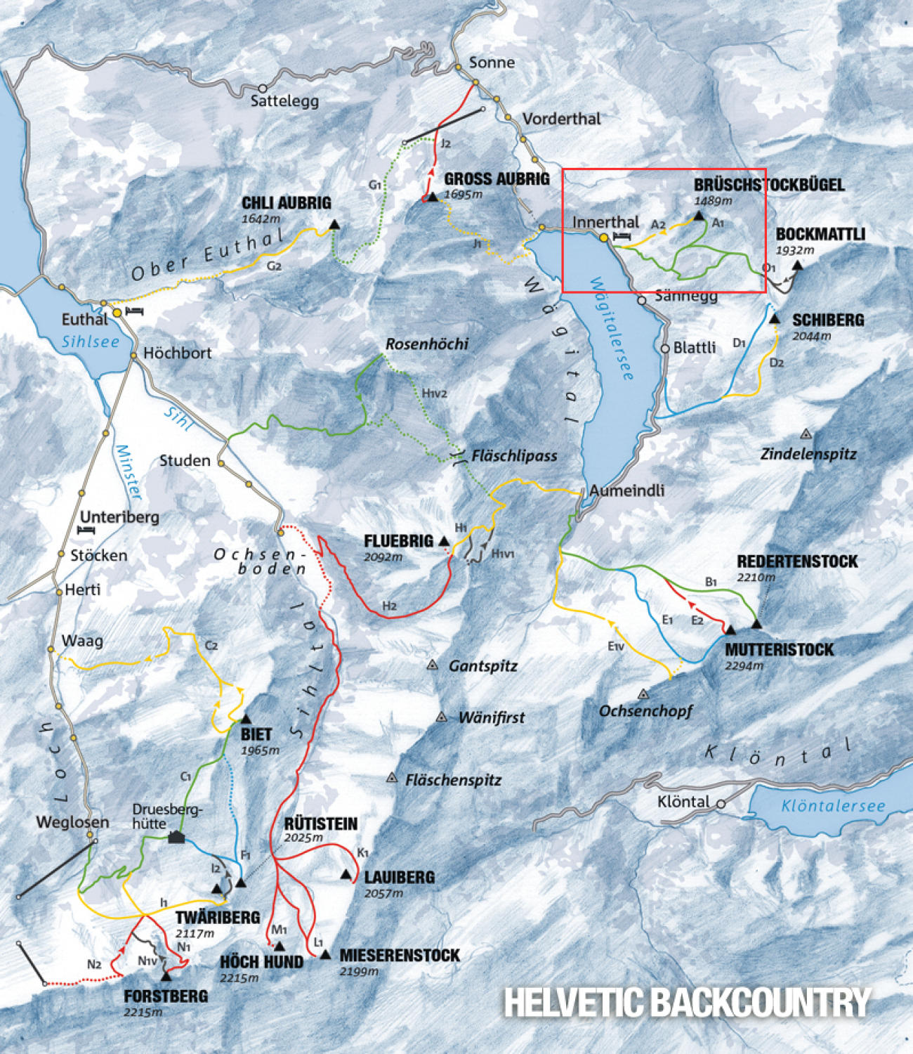 Siehe Route A1 auf der Übersichtskarte bei den Bildern (Die Tour ist eine von 400 vorgestellten Gipfel im neuen HELVETIC BACKCOUNTRY: Ski- und Snowboardtouren Atlas Schweiz (ab Nov. 2013 im Buchhandel). helveticbackcountry.ch