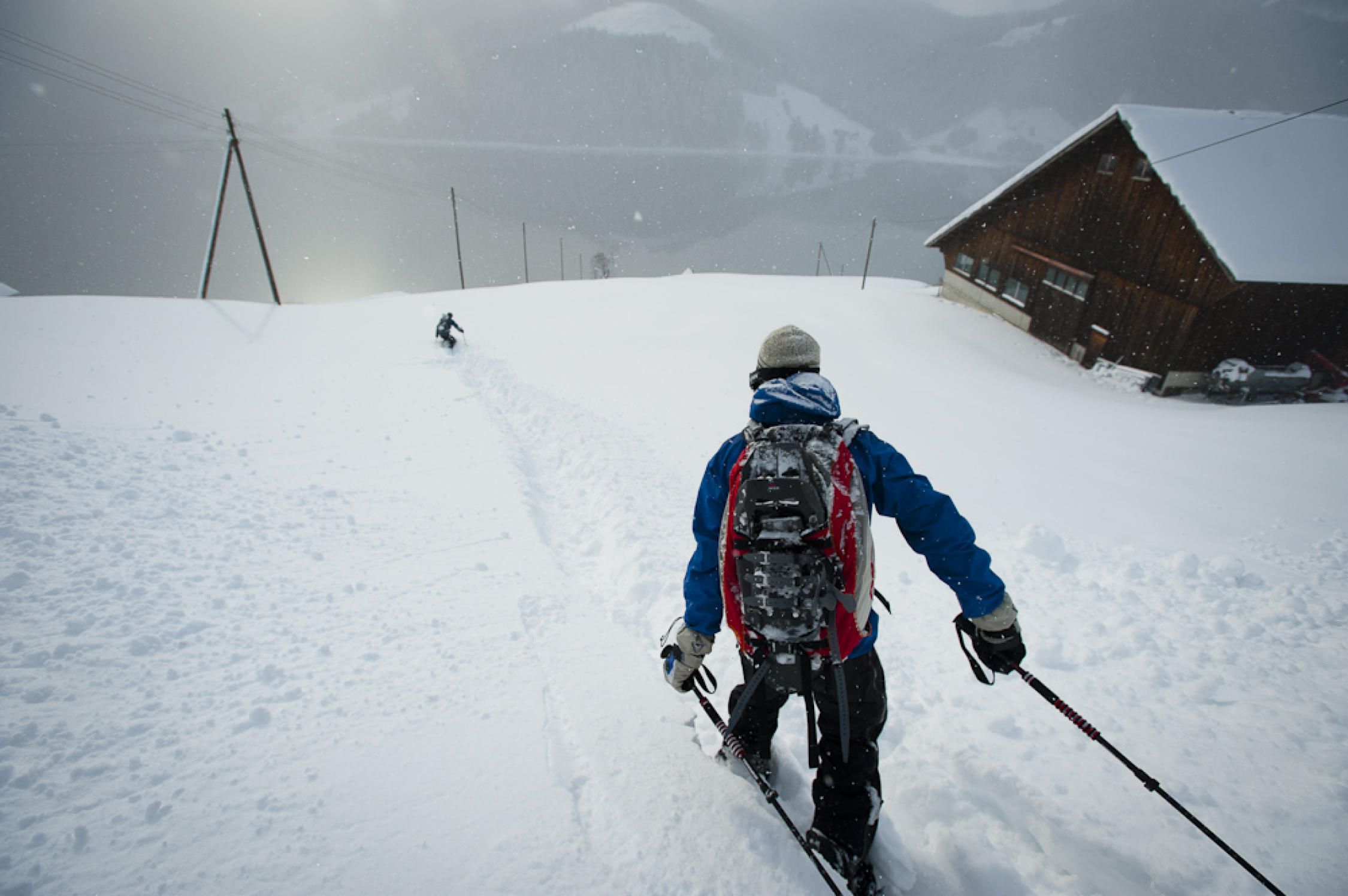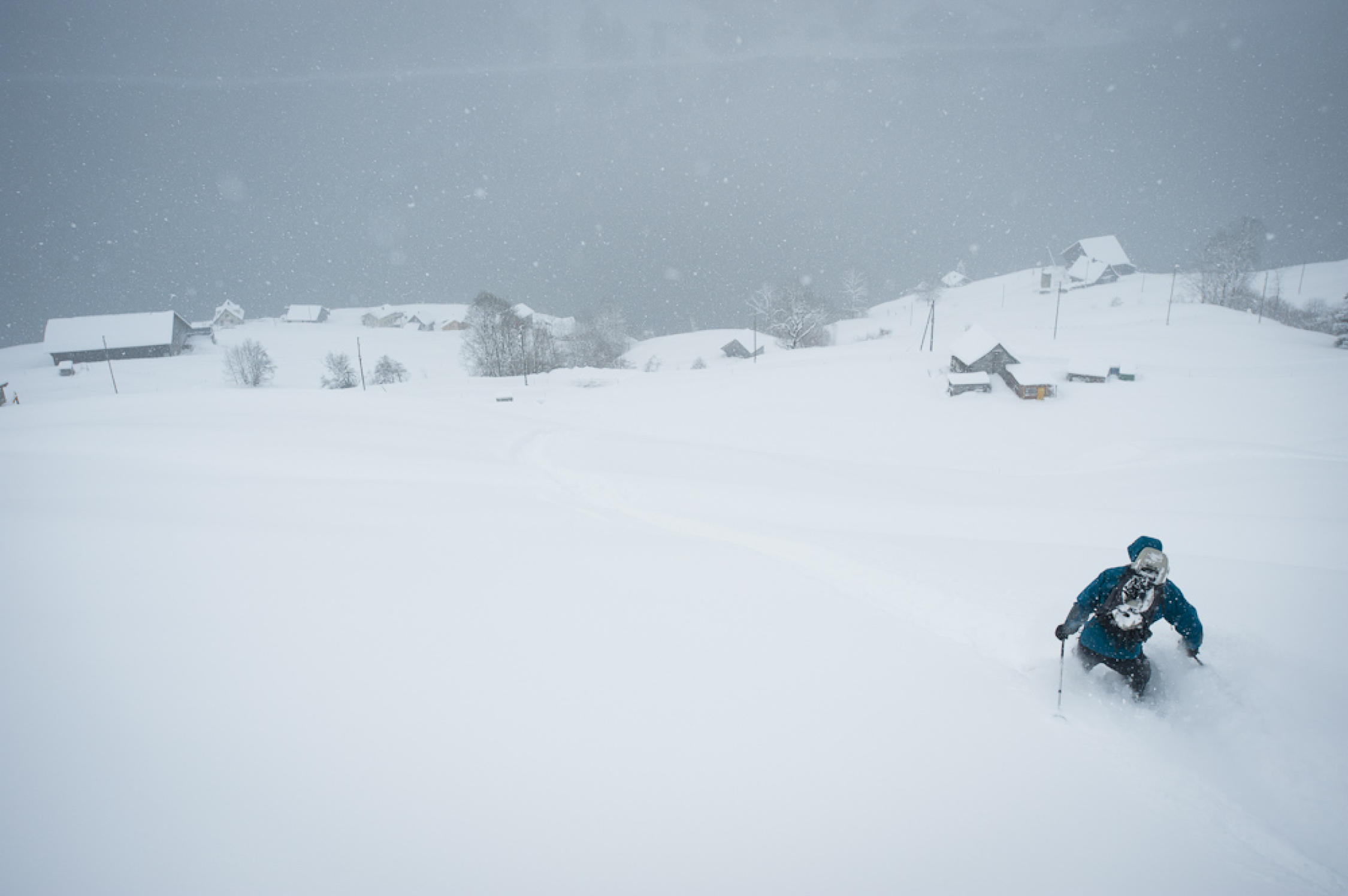 Gefühlte 1.5m Neuschnee. Wühlen im Schnee, schwitzen in der Jacke. Bei der Schwarzenegg war dann der Saft raus. Pflügen in der Abfahrt. Unglaublicher Pulver, aber entweder 10° zu wenig Neigung oder 1m zuviel Schnee.