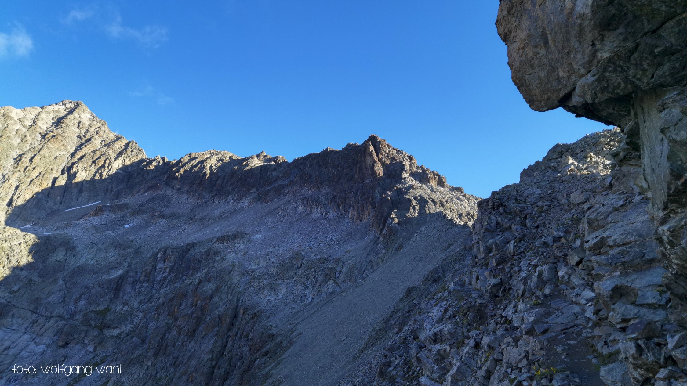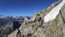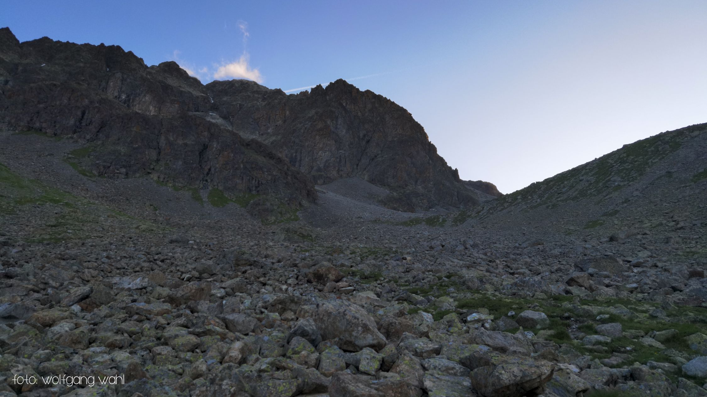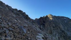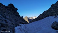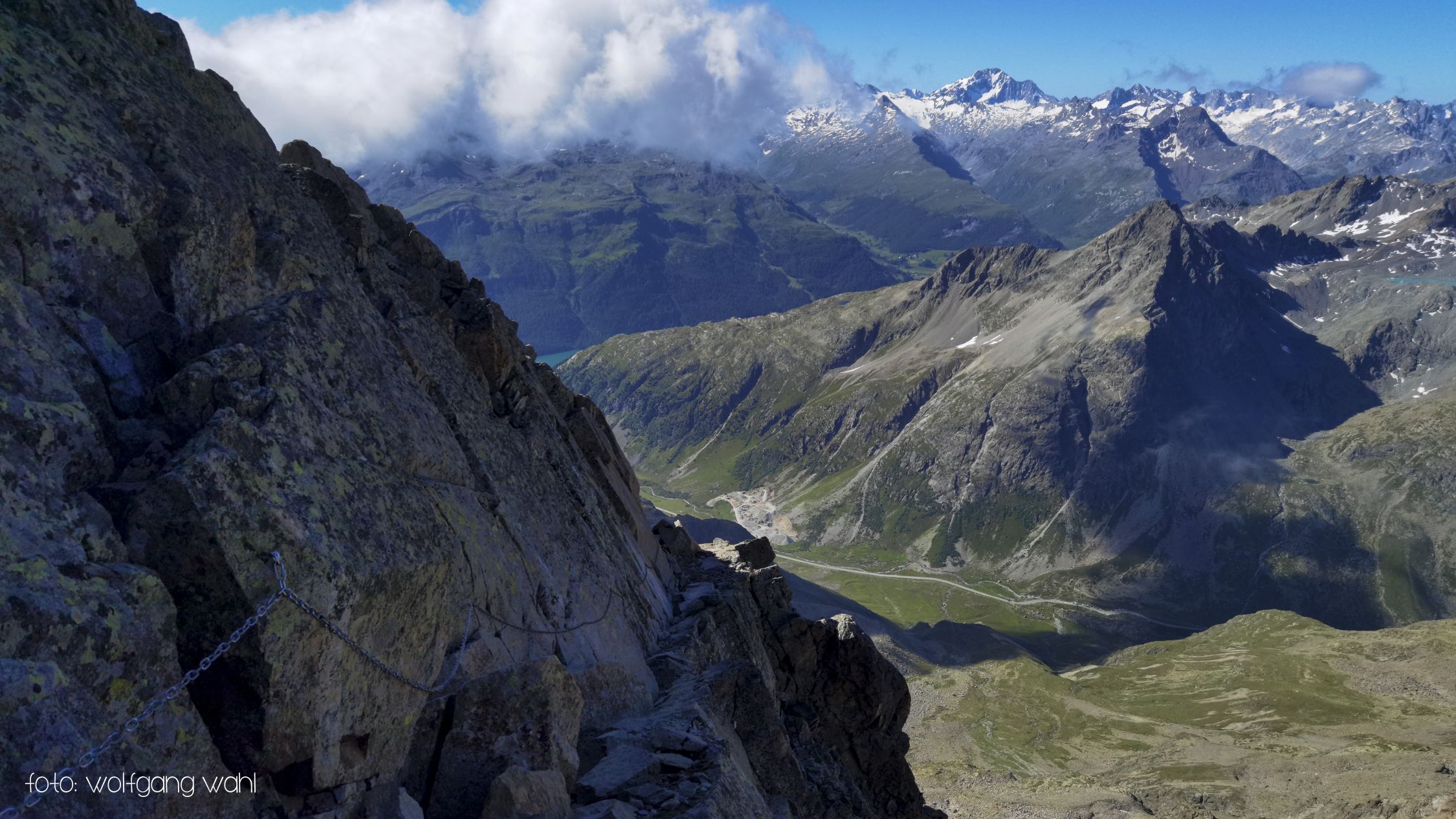 Vom kostenlosen Parkplatz auf der Alp Güglia bei Chamanna dal Stradin auf 2’161m, über P2233 zu P2371, weiter ins Munteratsch Suot, hoch zur Fuorcla Albana, ist der weiss-blau-weiss markierte Bergweg schneefrei, trocken und gut zu gehen. Auch der weitere Aufstieg über den langen Grat Crasta da la Senda zum Gipfel des Piz Julier / Piz Güglia ist komplett schneefrei, mit Ketten fast schon übermässig gesichert und gut zu gehen. Vor allem im ersten Teil des Klettergeländes ab 2’950m bis 3’100m liegt viel Schutt, sind viele Berggänger unterwegs, besteht Steinschlaggefahr. Ansonsten ist das schöne Kraxelgelände bis zum Gipfel auf 3’380m einfach und gut zu gehen. Auch der Abstieg über dieselbe Route ist trocken und angenehm zu gehen.