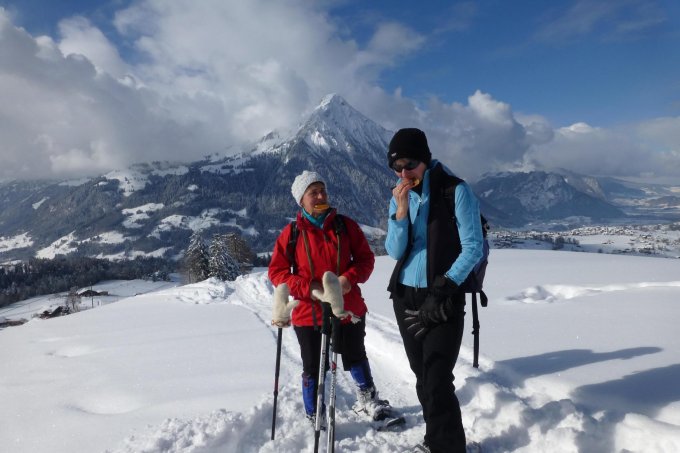 Wir wollten eigentlich das ganze Suldtal hinauf aber die grossen Schneemengen zwangen uns zur Umkehr und direkter Aufstieg nach Aeschiried. Weiter oben auch viel Neuschnee und so beschlossen wir bei den Gedenkbrunnen unser Gipfel für Heute zu machen.