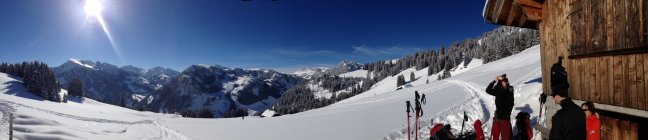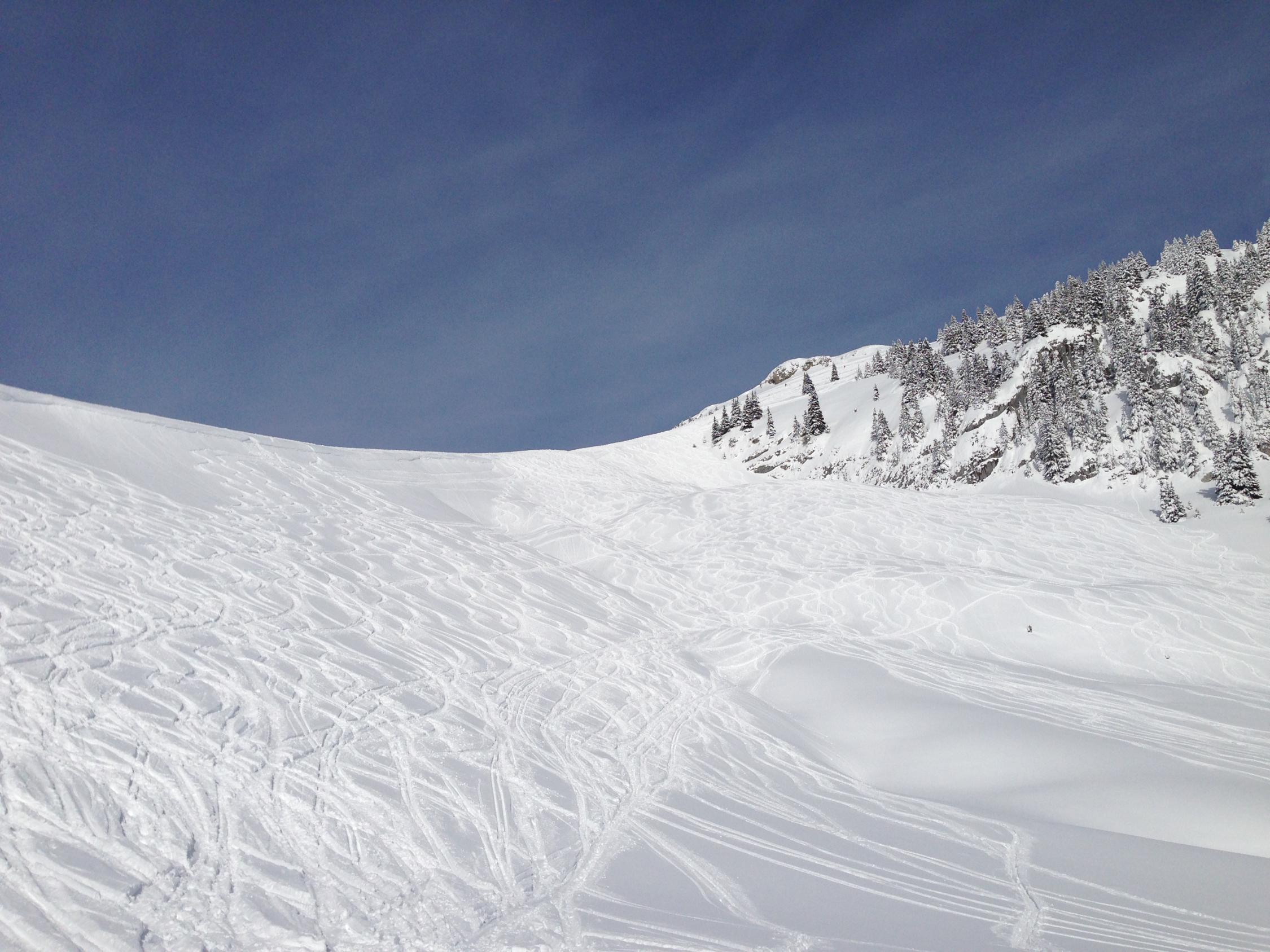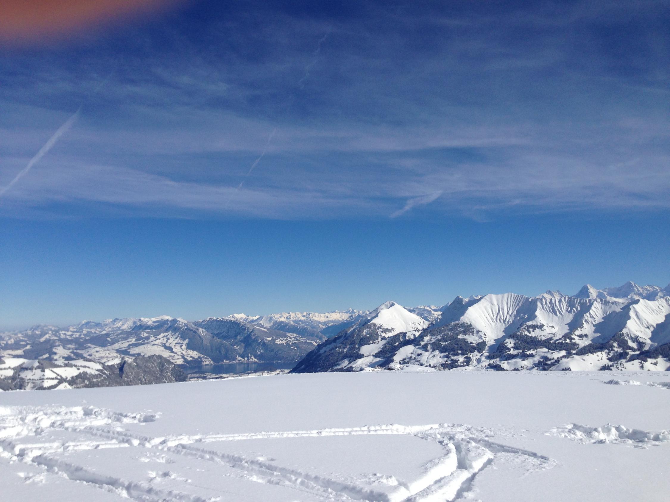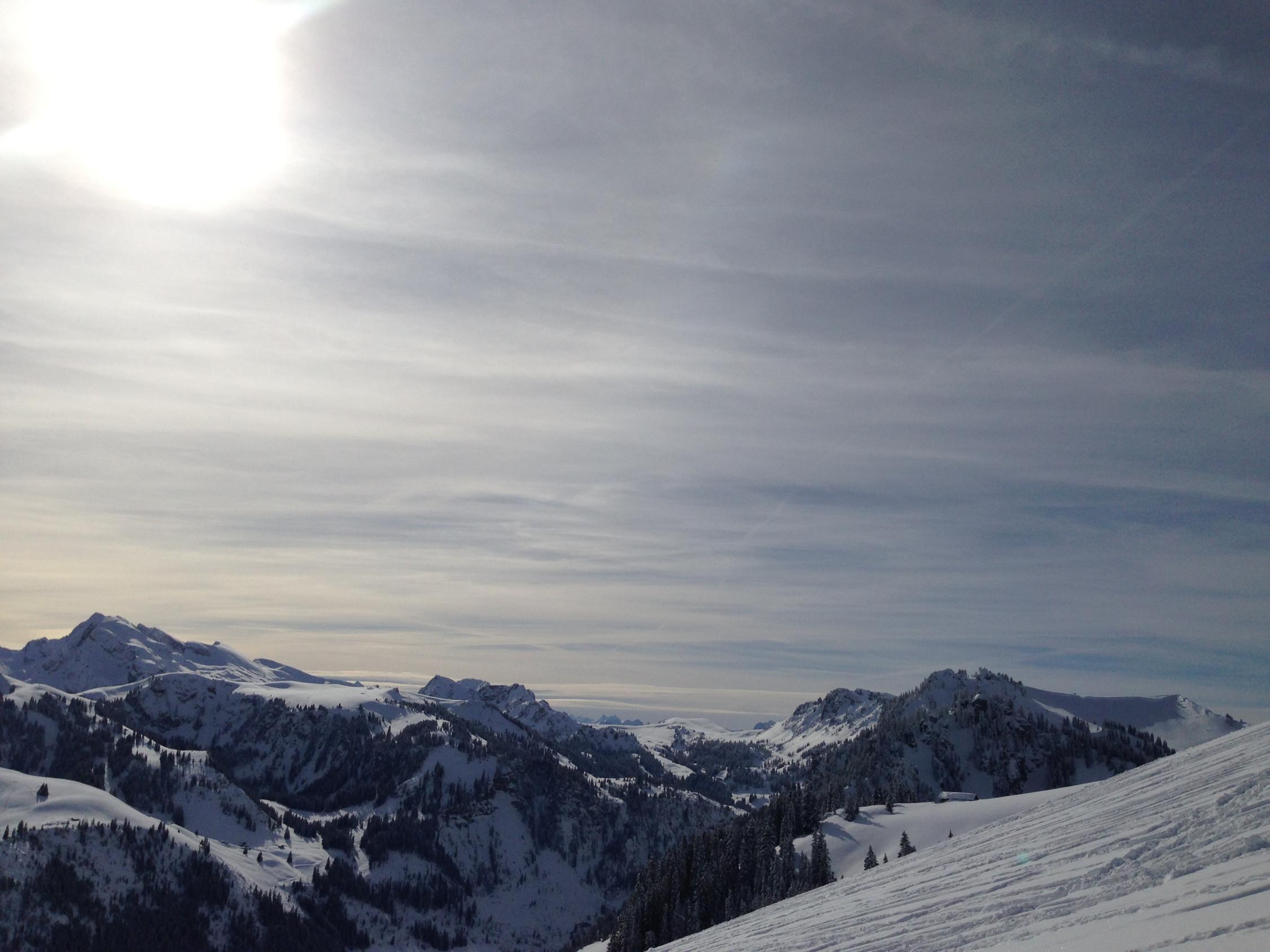 Einige Lawinen gesichtet. Beim Tschipparällehore eine Grundlawine etwa 2000 MüM, Südwesthang