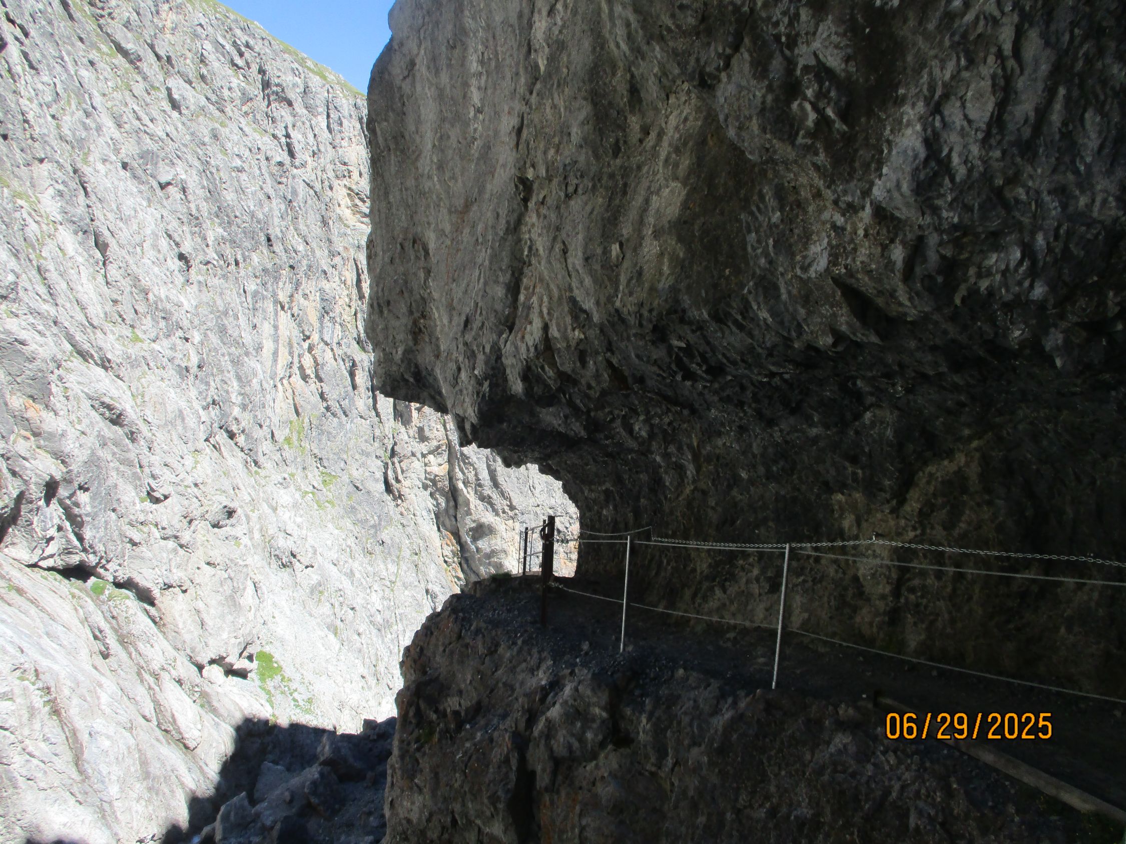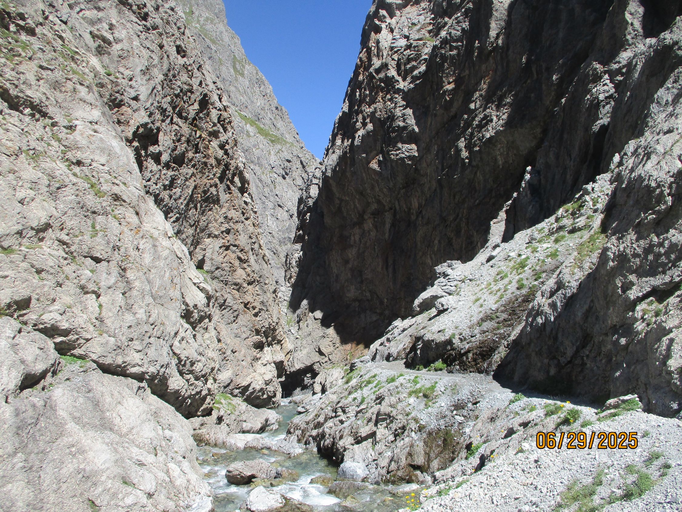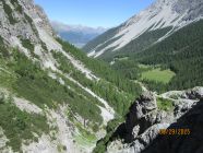Sonntag, 29.06. Aufbruch vom Biwak 8 h, zunächst zurück zur Fuorcla da Rims. Abstieg über Lai Grond (2686 m) und weiter gen Osten hinab ins Val d´Uina. Durch die prächtige Uinaschlucht und weiter das Tal hinaus bis Sur En (1123 m). Ankunft dort 13.45 h.