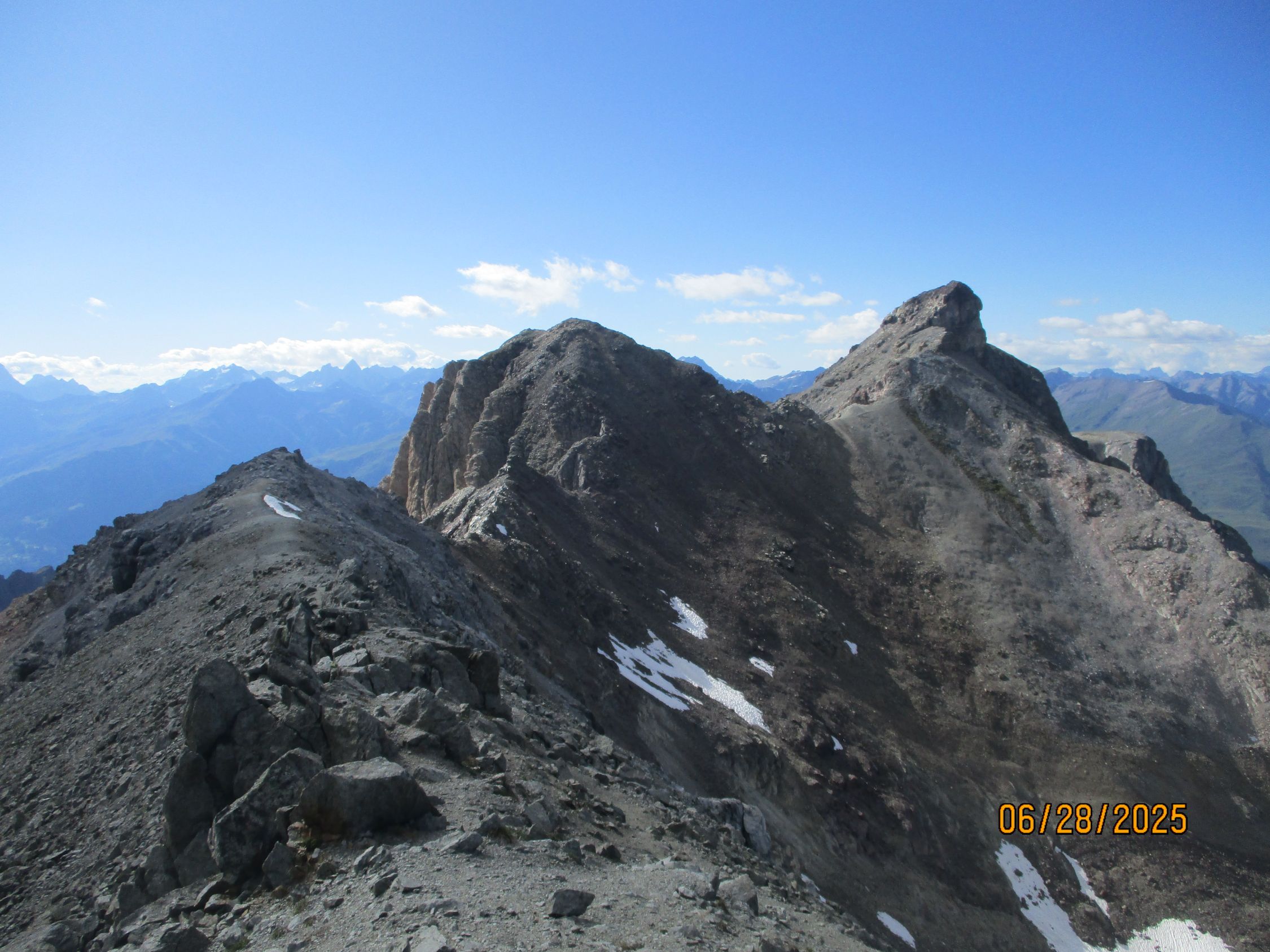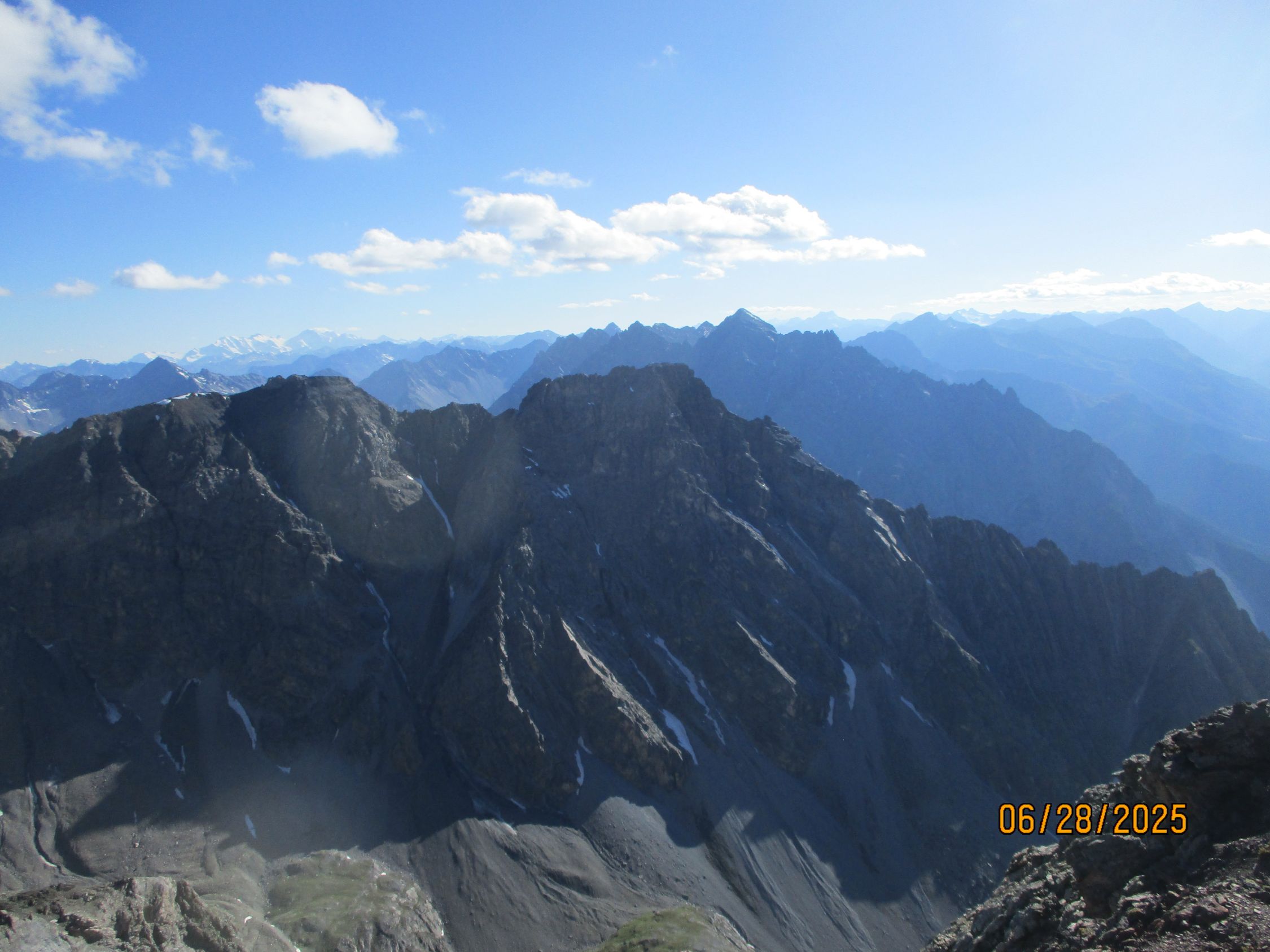 Samstag, 28.06. gegen 10.30 am Bahnhof Scoul-Tarasp gestartet. Aufstieg durchs Val Lischana, Rucksackdepot auf der Fuorcla da Rims (2940 m). Von dort aus in ca. 40 Minuten zum Gipfel, Ankunft dort 18.15 h. Retour zur Fuorcla und in etwa 40 Minuten zum Lajet da lischana (2855 m). Biwak.